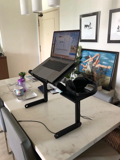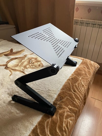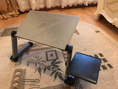 The nice part is you can change the angle in many ways and its adjustable to any position. It took some time to set a perfect position for me but after setting it, the stand is very stable and very convenient to use. The mouse plate is an added advantage now I can sit in my bed or sofa and work conveniently.