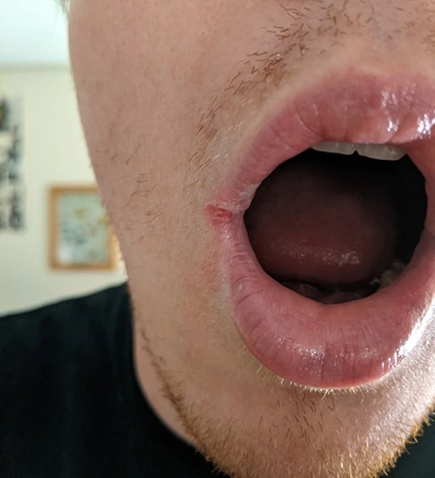 “Saliva collects at the corners of the mouth and causes dryness. Very dry skin in this area can lead to angular cheilitis.