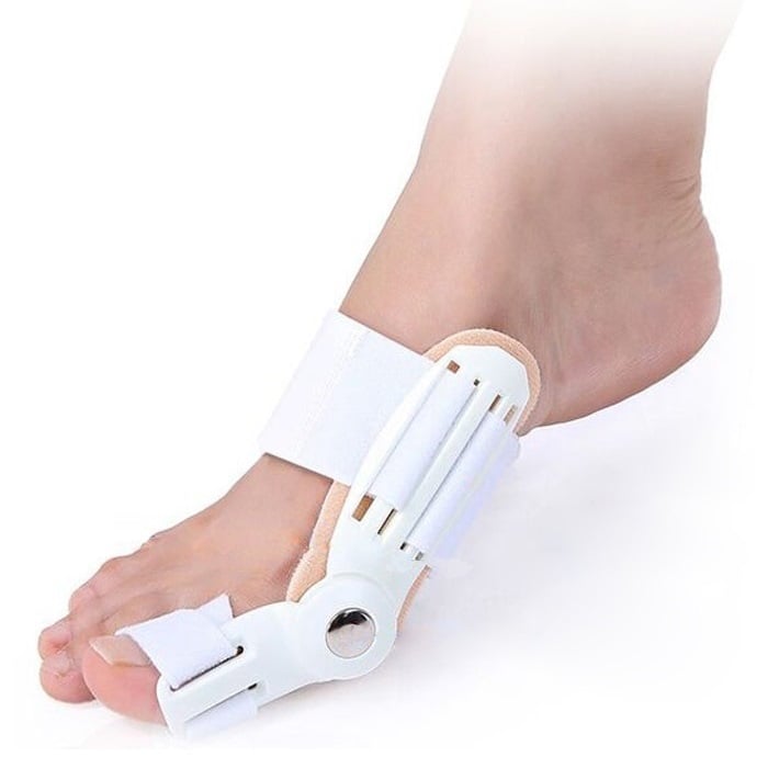 This device applies a 3-point pressure system to relieve hallux valgus deformity and correct the big toes to their natural alignment.
