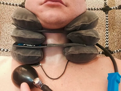 I woke up one day with a kink in my neck, two days later all the muscles in my neck had seized up. Couldn’t recline, lay down and it even hurt to swallow. I use the traction for 10-15 minutes at a time, after one night of using this for support I was almost pain free the next day and just had a little stiffness when turning my head. Now, I don’t travel without it!