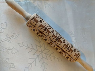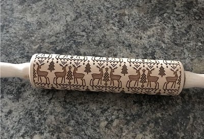 This rolling pin features a lovely pattern, and it’s very easy to use! This extraordinary wooden rolling pin is engraved with beautiful snowflakes, reindeer, and Christmas trees.