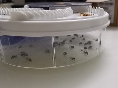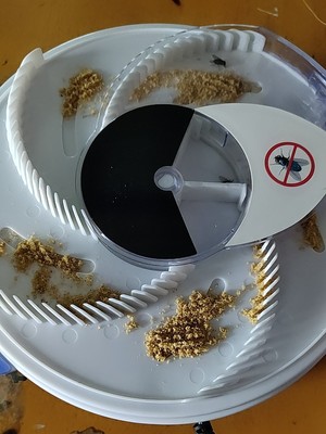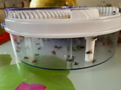Step 3: The flies are attracted by the baits and transferred to the rotating plate trap box.