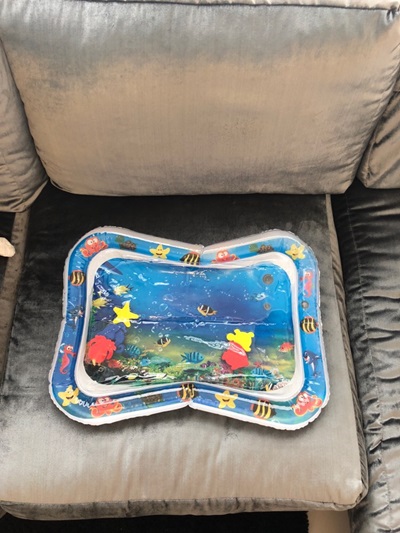Arrived super early! It’s a perfect size, the color and images are clear and eye catching for my baby. You can fill it up as much or as little as you like. The quality is great there are no leaks or holes. Great for tummy time and naps, it is great for the summer heat.