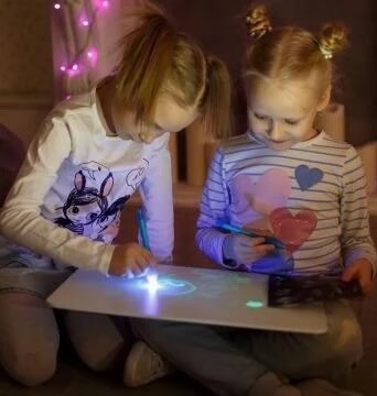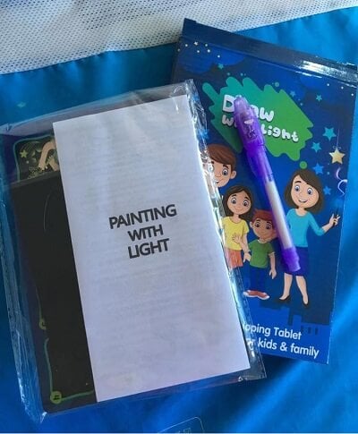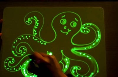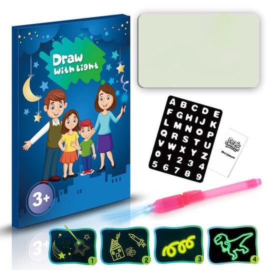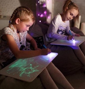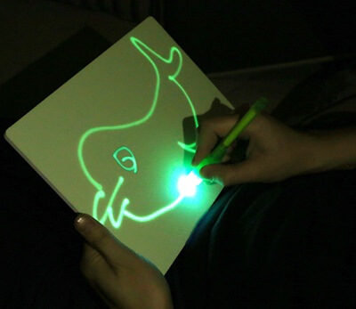 Fun for the whole family! Even adults will have fun with this drawing board. Alternatively, use it to tell a story to your kids. Turn the lights off, and you’ll be ready to put on an incredibly light drawing show!