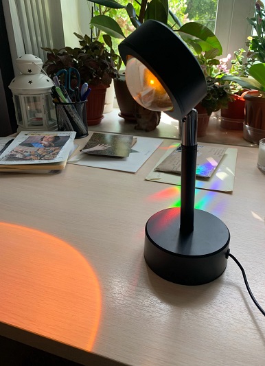 This little lamp is awesome! It really does look like the sunset. I was skeptical that it would be so nice. I bought it to photograph jewelry and shirts that I make. It provides a pretty background. It’s also small and compact, but projects very large.