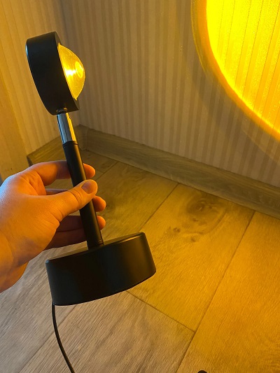 The lamp gives the room a touch of Cali sunset. I’m very impressed by the lamp! Easy to use and light weighted.